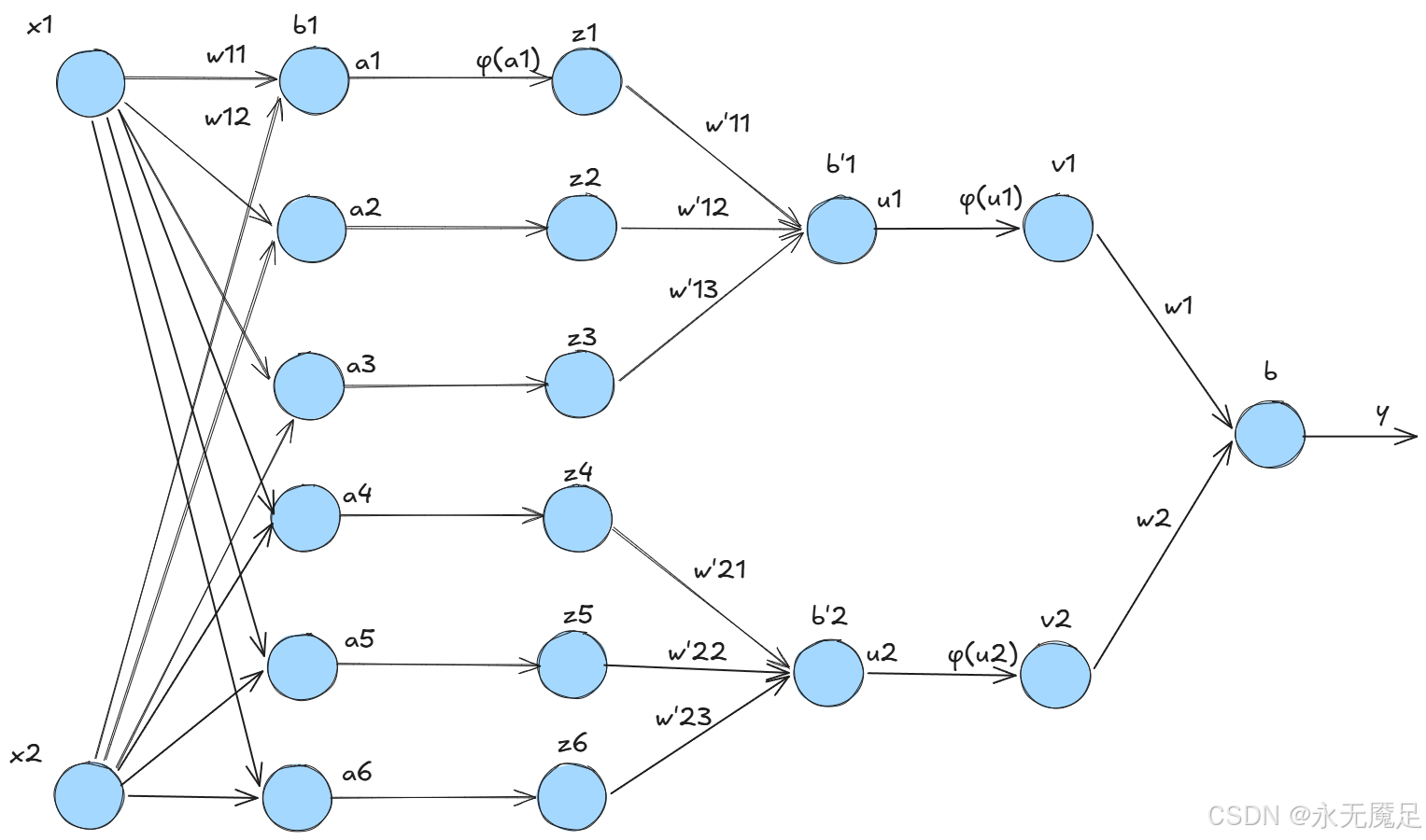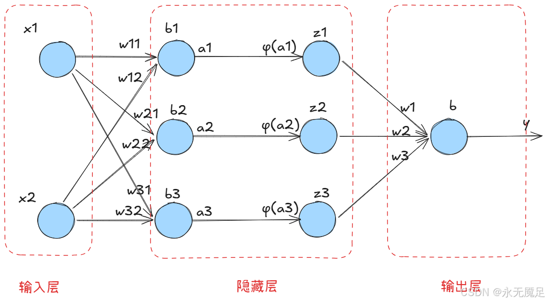 对应三层网络结构如下: