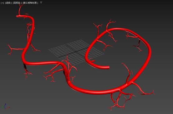 使用3ds Max的图形工具绘制一条样条线作为血管的主干路径