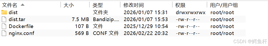 1、上传构建好的 dist,编写Dockerfile文件