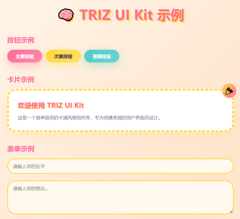 卡通风格 UI 组件库html (TRIZ UI Kit 🧠)