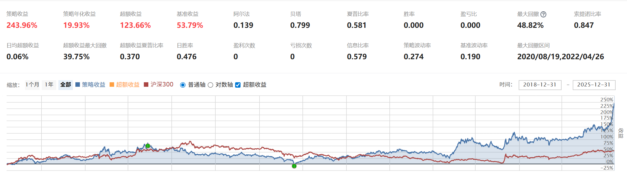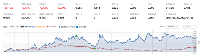 以系统1为例,对沪深300成分股应用海龟交易法进行回测,测试区间为2019-01-01到2025-12-31,回测结果如下: