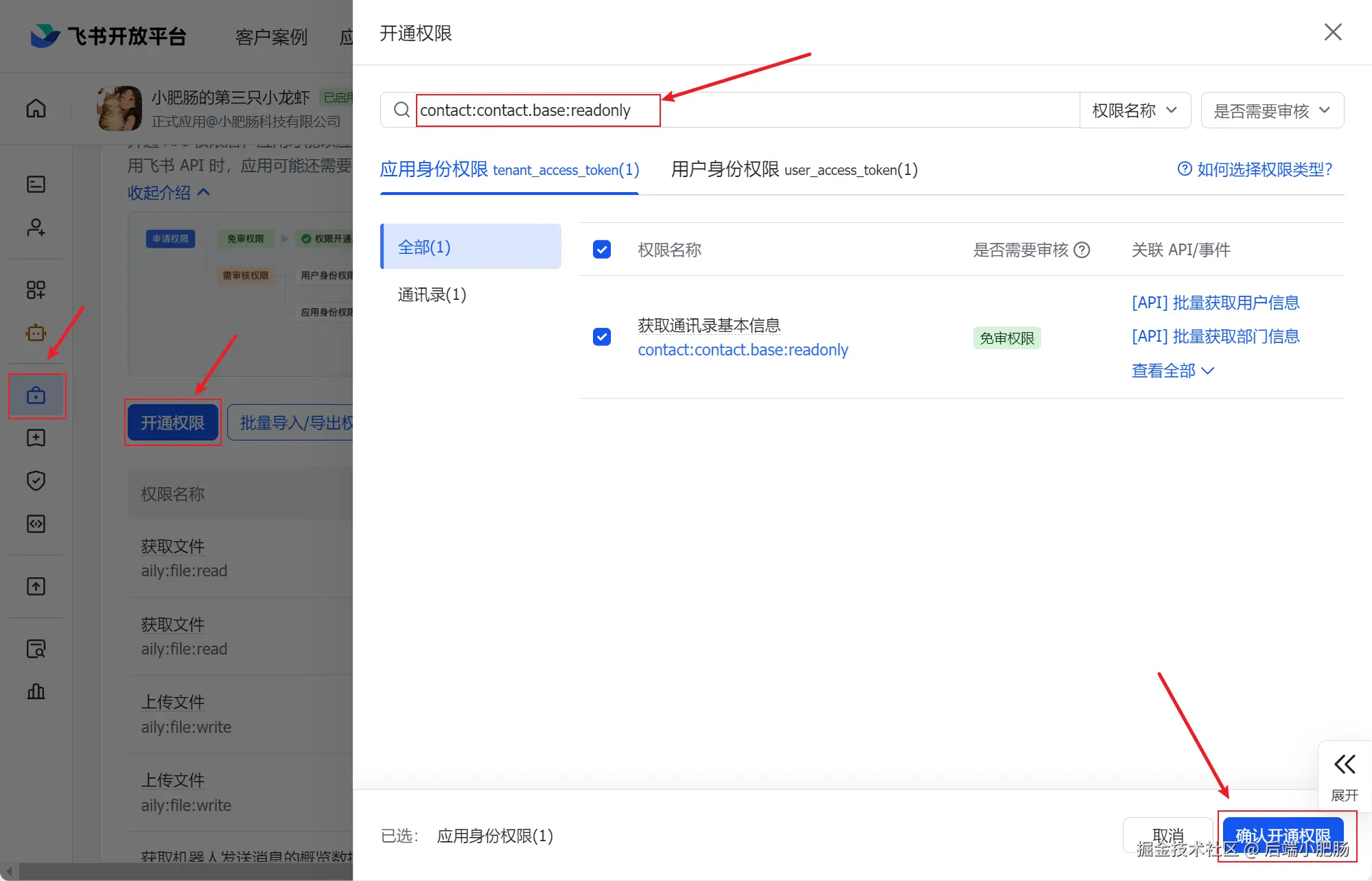 - 飞书应用开通相应权限并重新发布