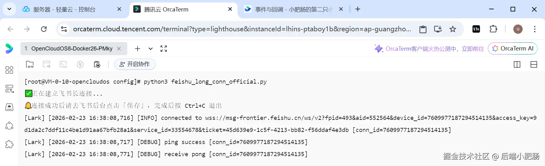 输入命令python3 feishu_long_conn_official.py启动临时长链接