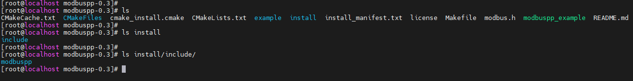 可以看到modbuspp源码目录的install目录下生成了它的头文件: