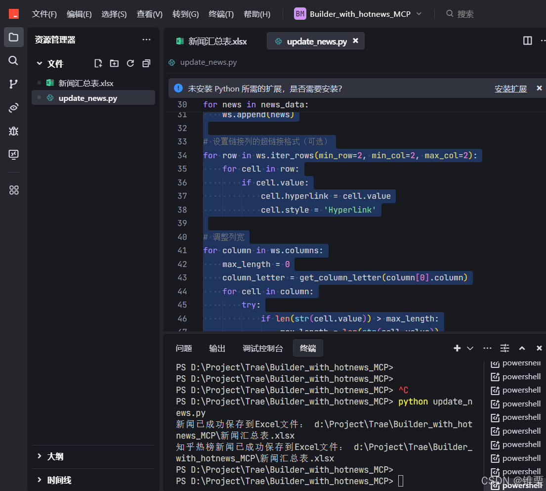 - [Trae: 新闻热榜保存到本地Excel](#Trae: 新闻热榜保存到本地Excel)