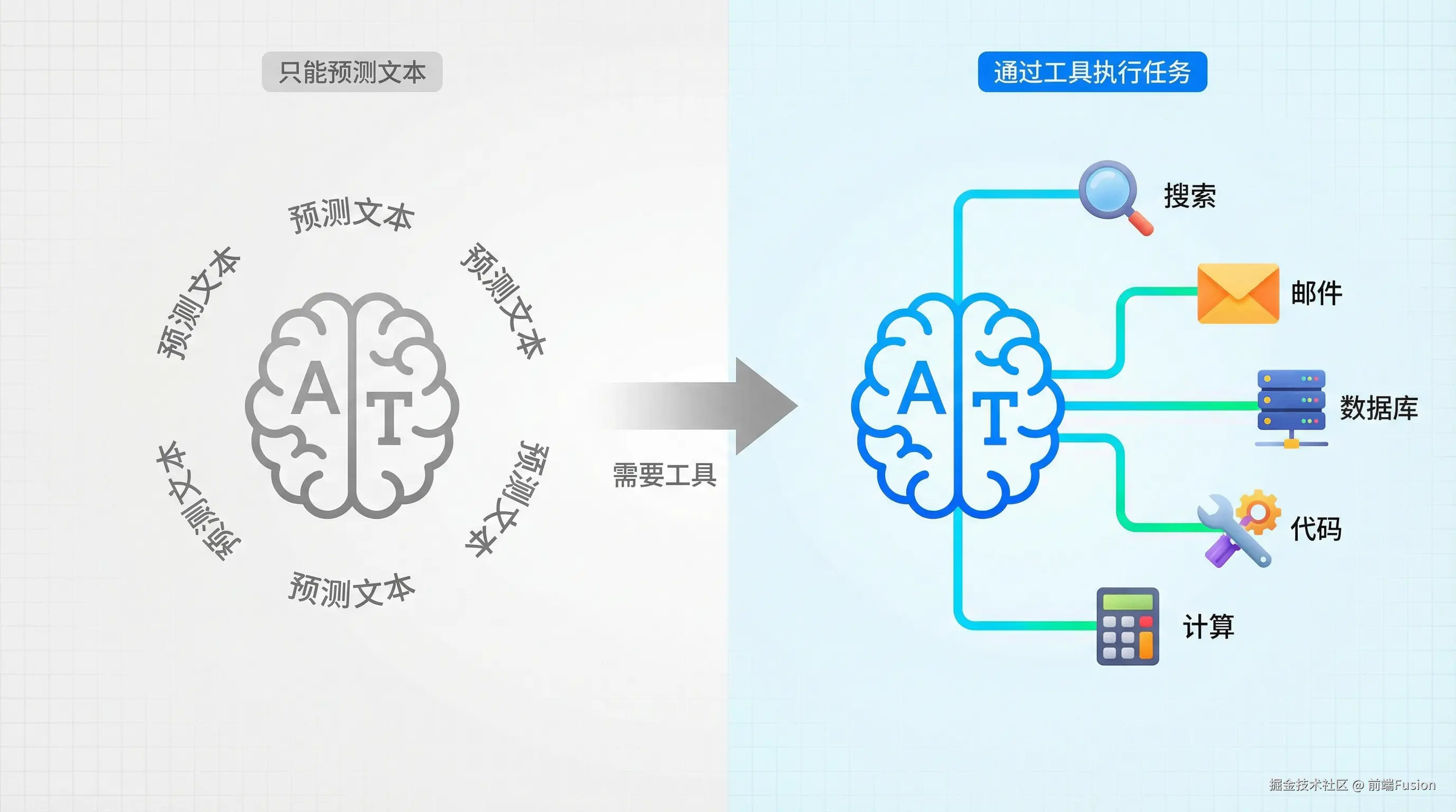 没有工具,它最多只能把「应该怎么做」说得很像,但无法把事情真正做成。