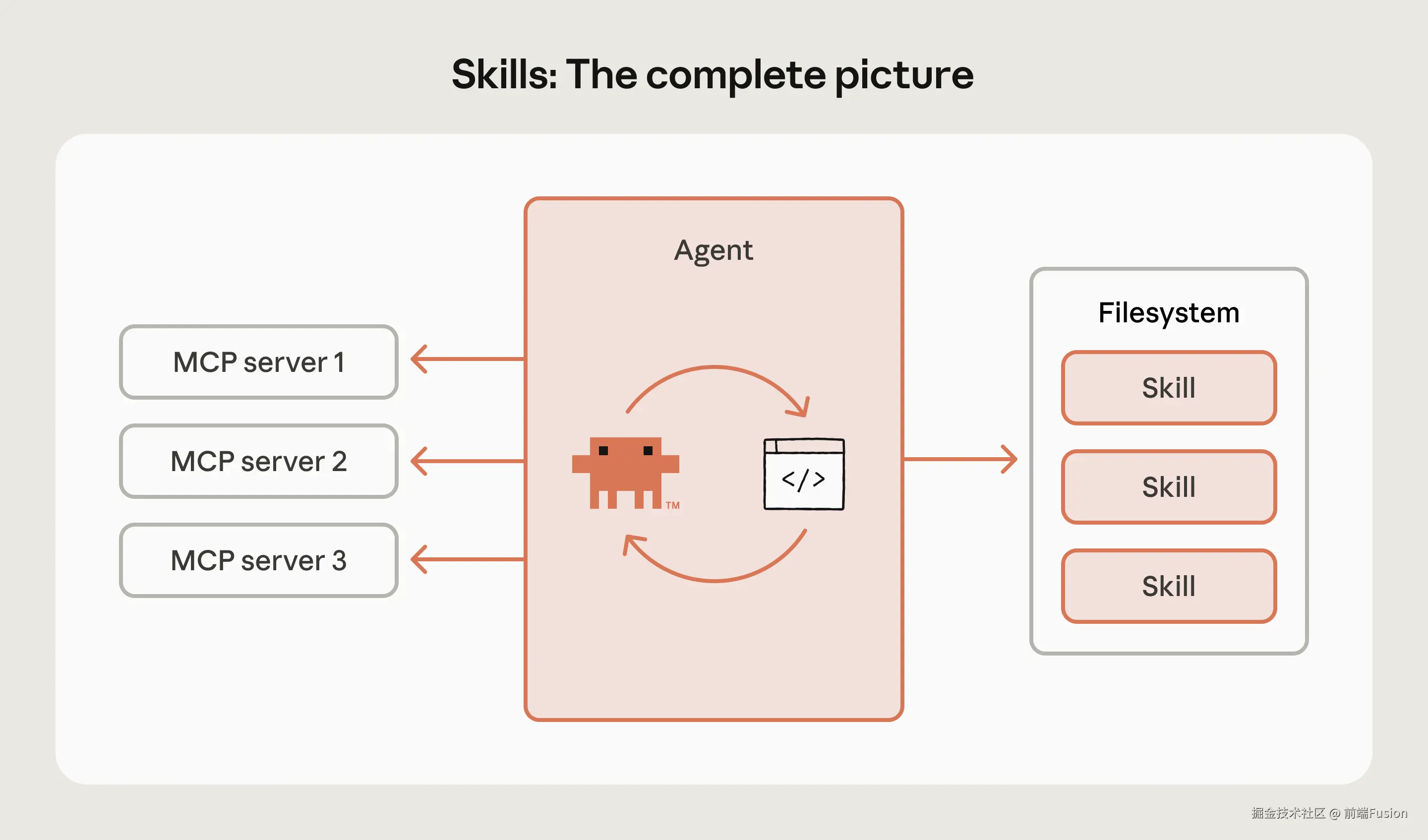 现在把 Skills 加进来,看看完整链路如何协同运转。