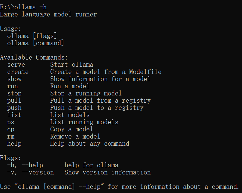 ollama -h可以查看 ollama 的其他命令