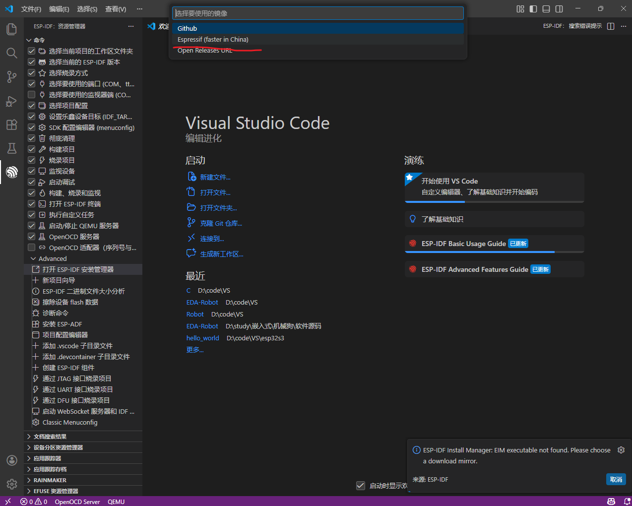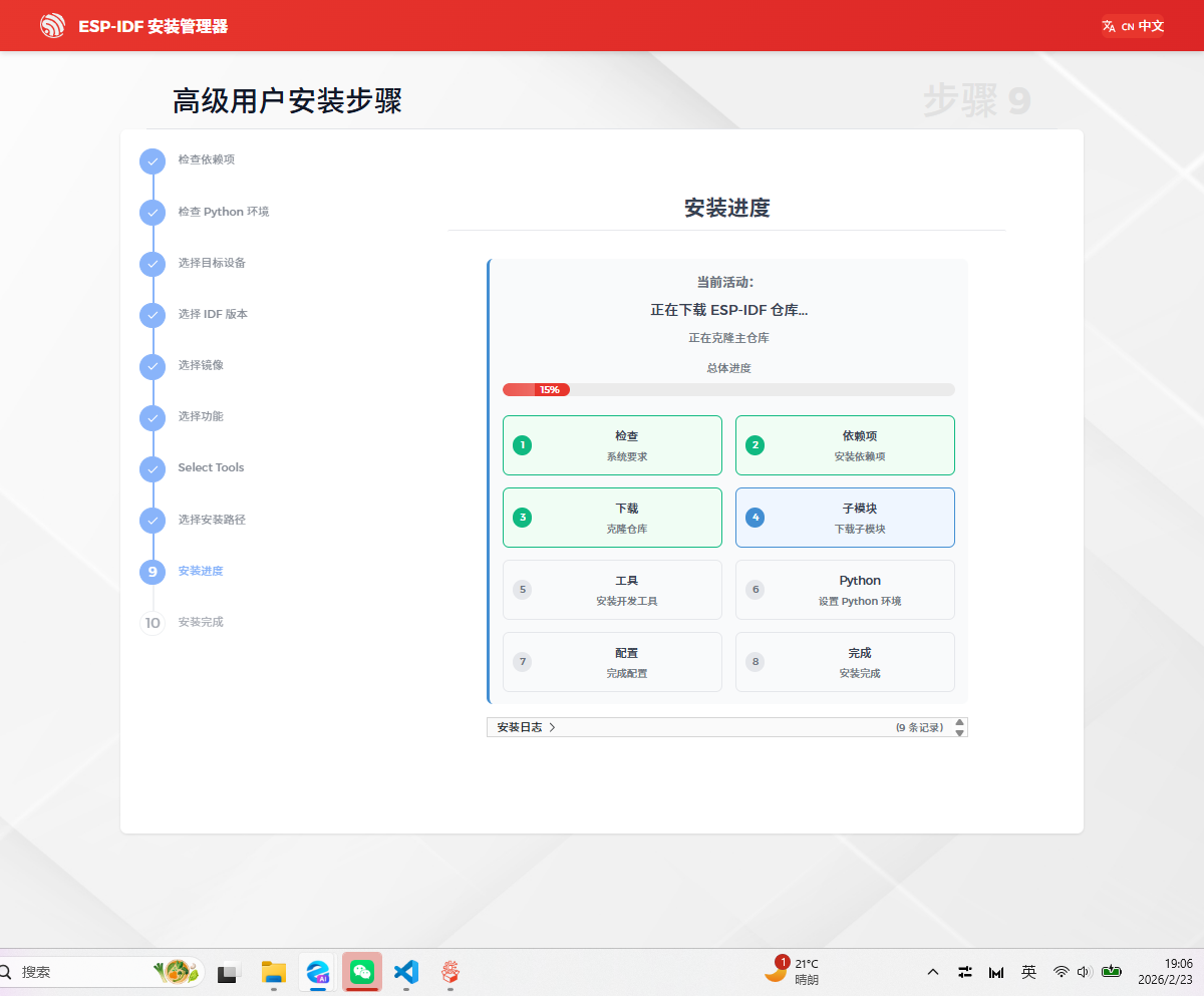 ESP-IDF 安装管理器需要用 Git 从远程仓库下载 / 克隆最新的 ESP-IDF 源码;