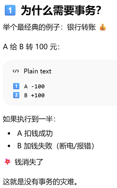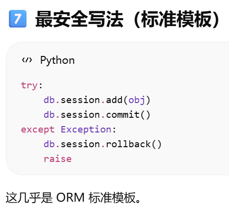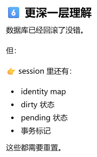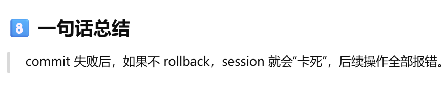 - 事务=一组必须"要么全部成功,要么全部失败"的数据库操作。session是事务的容器