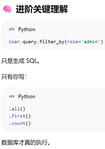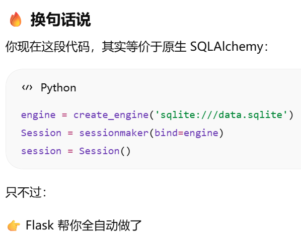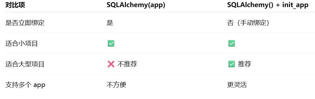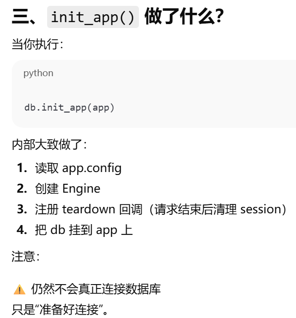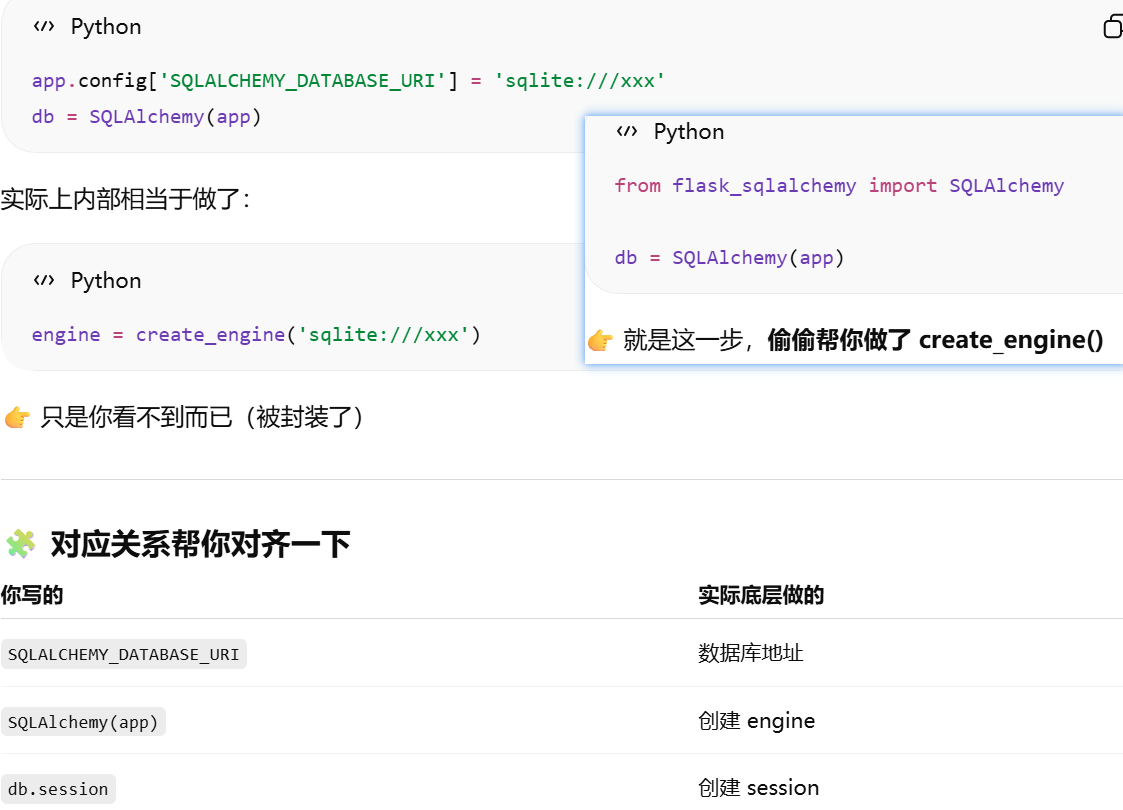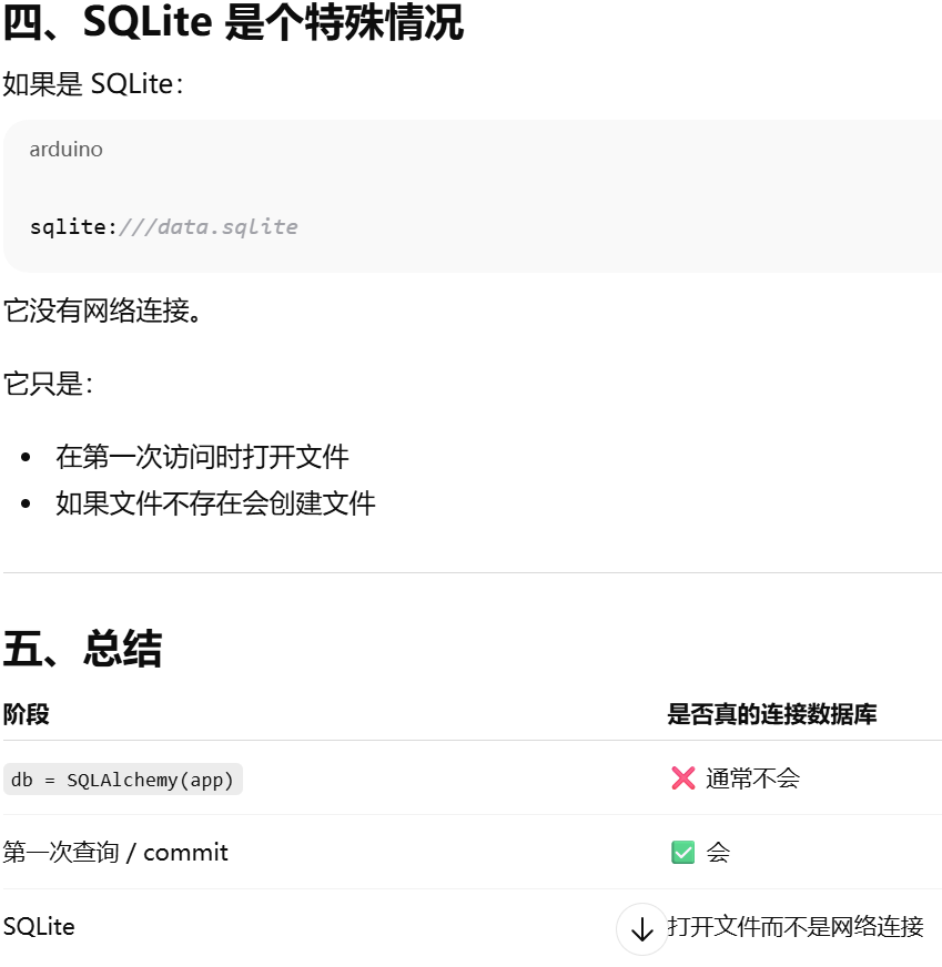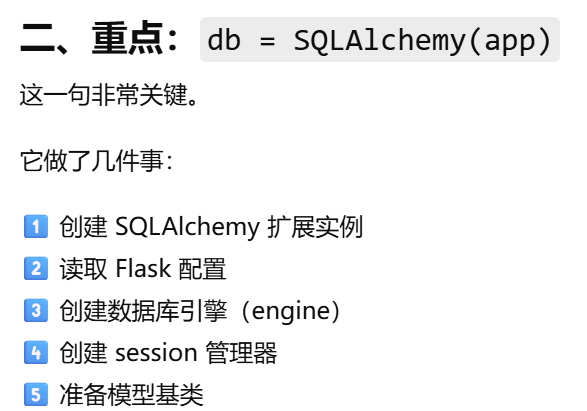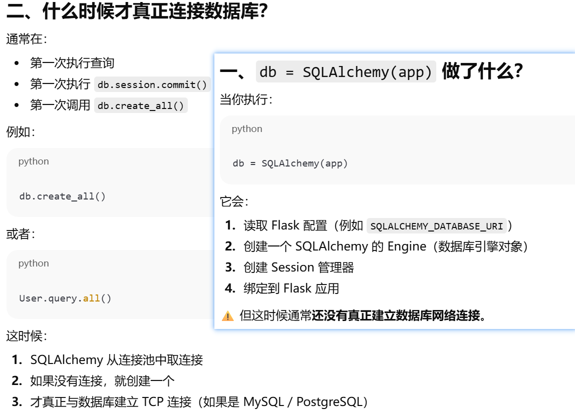 - [SQLAlchemy(app) 只是"准备好连接数据库",真正的数据库连接通常发生在第一次实际数据库操作时。](#SQLAlchemy(app) 只是“准备好连接数据库”,真正的数据库连接通常发生在第一次实际数据库操作时。)