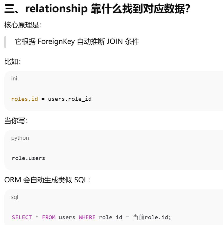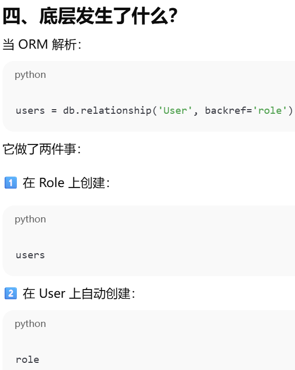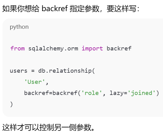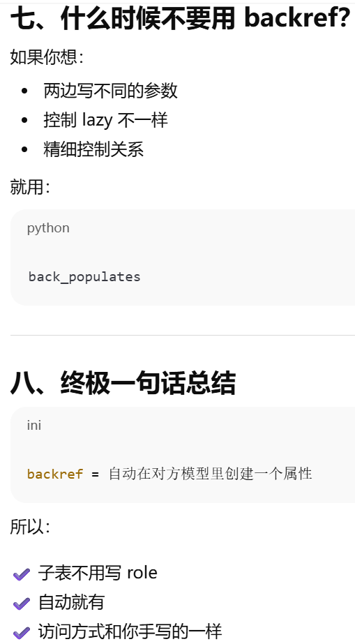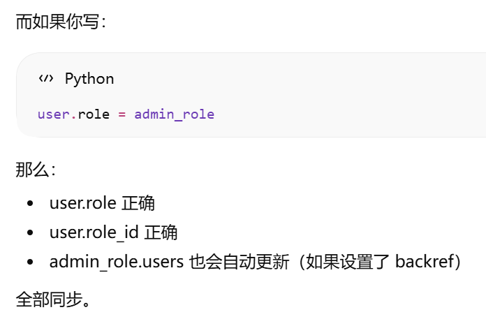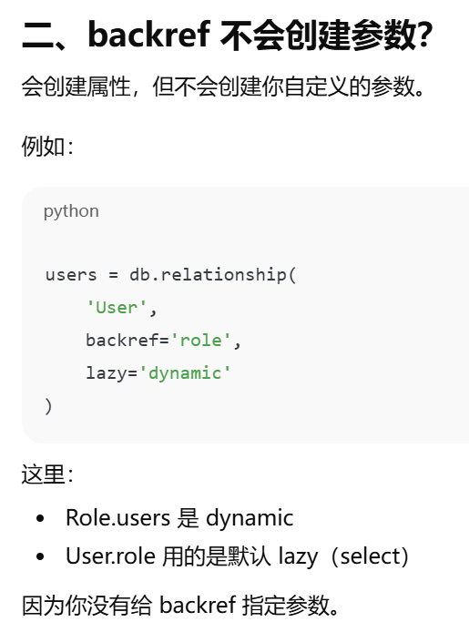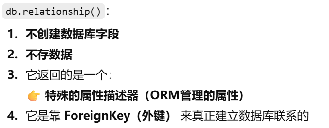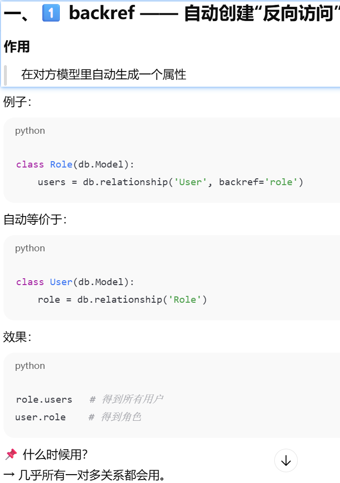 - [如果你在父表里写了 backref,子表就不需要再手动写那个属性,ORM 会帮你自动创建](#如果你在父表里写了 backref,子表就不需要再手动写那个属性,ORM 会帮你自动创建)