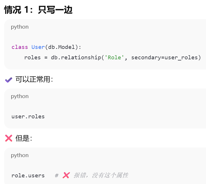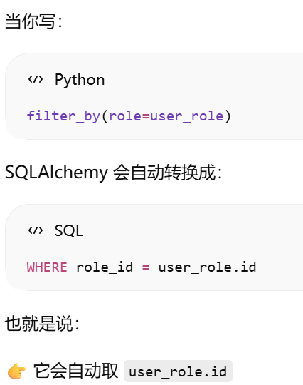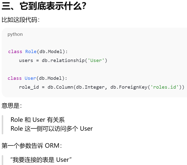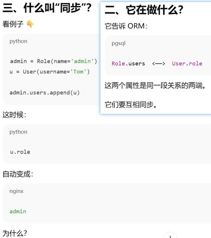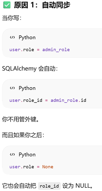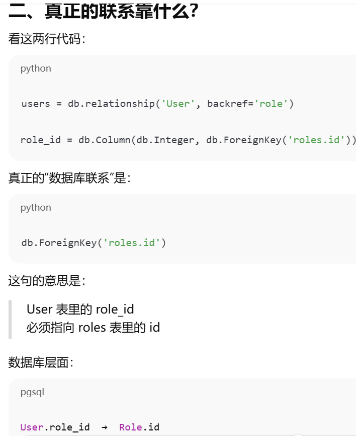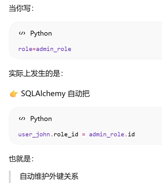 - [如果你在父表里写了 backref,子表就不需要再手动写那个属性,ORM 会帮你自动创建](#如果你在父表里写了 backref,子表就不需要再手动写那个属性,ORM 会帮你自动创建)