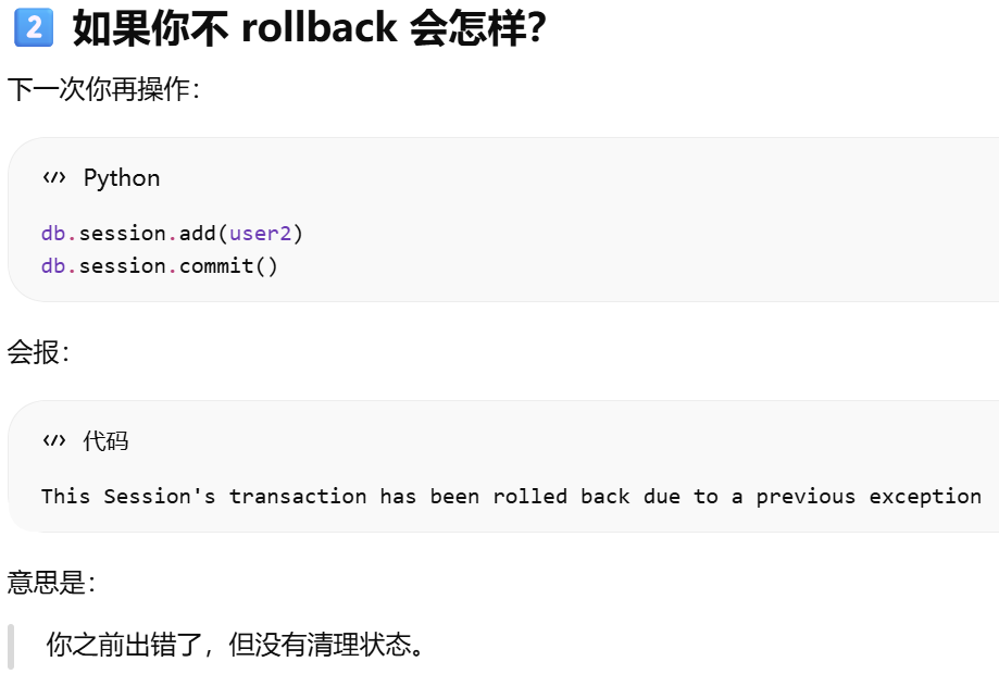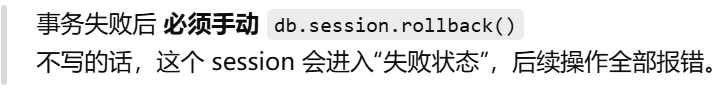 - [事务失败后 必须手动 db.session.rollback()](#事务失败后 必须手动 db.session.rollback())