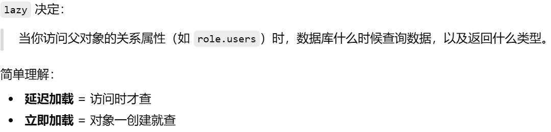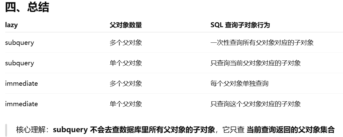 - [lazy ------ 决定访问关系属性时数据库什么时候发 SQL](#lazy —— 决定访问关系属性时数据库什么时候发 SQL)