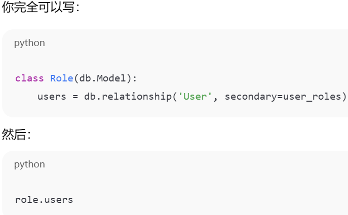 - [relationship()是用来在 Python 里建立两个模型之间的联系](#relationship()是用来在 Python 里建立两个模型之间的联系)