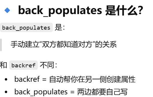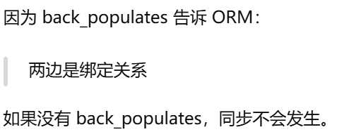 - [back_populates 是:手动建立"双方都知道对方"的关系。](#back_populates 是:手动建立“双方都知道对方”的关系。)