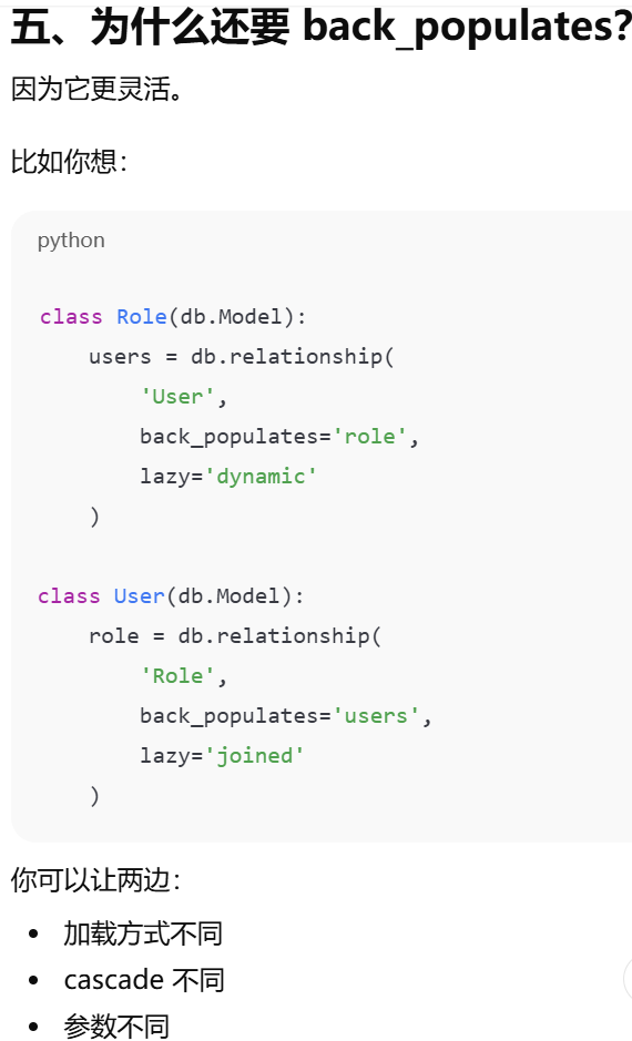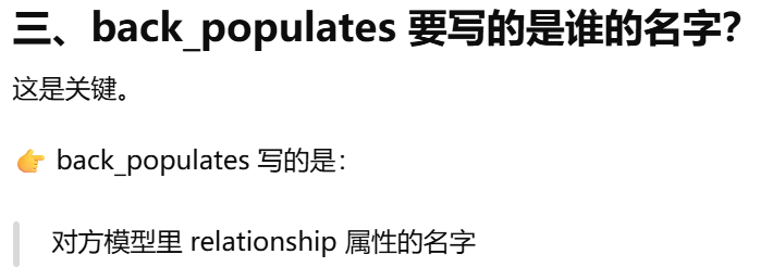 - [back_populates 写的是:对方模型里 relationship 对应的变量名](#back_populates 写的是:对方模型里 relationship 对应的变量名)
