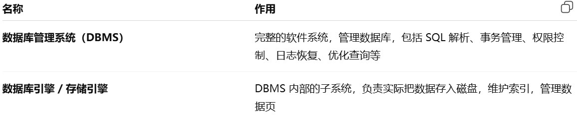 - [数据库管理系统 vs 数据库 vs 数据库引擎](#数据库管理系统 vs 数据库 vs 数据库引擎)