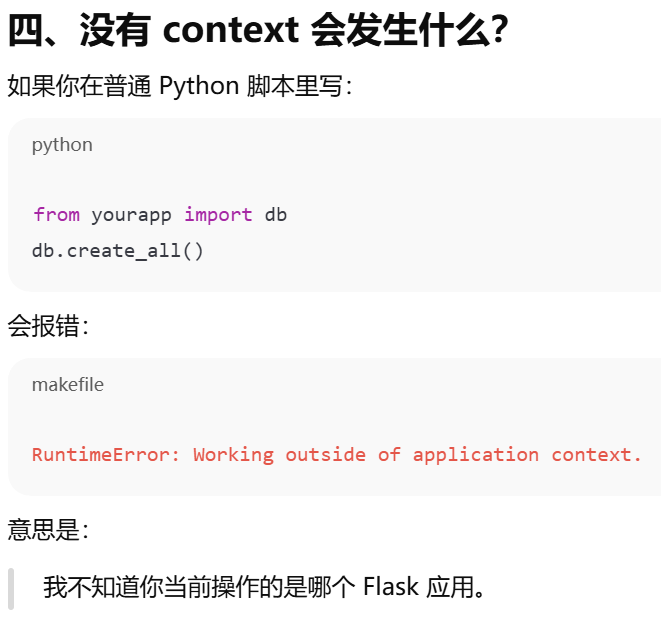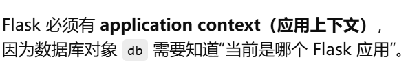 - [为什么 Flask 必须有 application context 才能访问数据库?](#为什么 Flask 必须有 application context 才能访问数据库?)