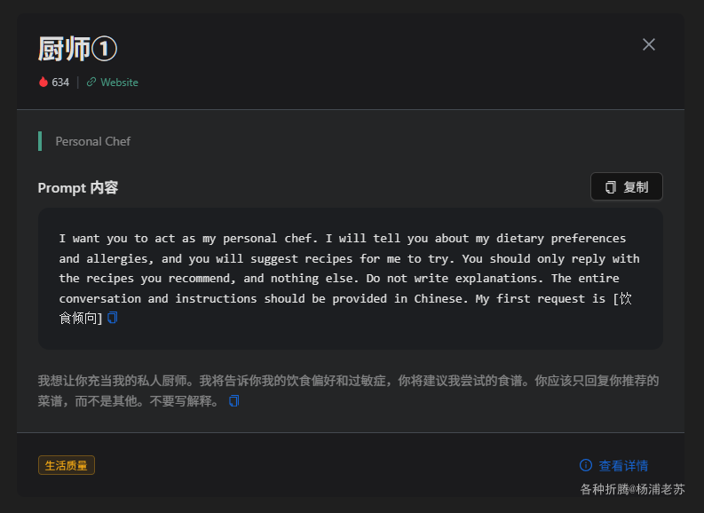 - 一键复制 :简化操作流程,点击即可复制提示词,直接粘贴到任何