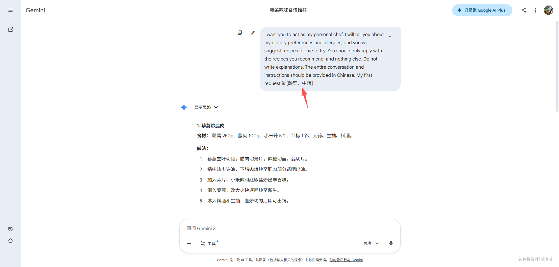 将 [饮食倾向] 改成了 [赣菜,中辣] 风格,推荐的前三道是 藜蒿炒腊肉、赣南小炒鱼、萍乡小炒肉