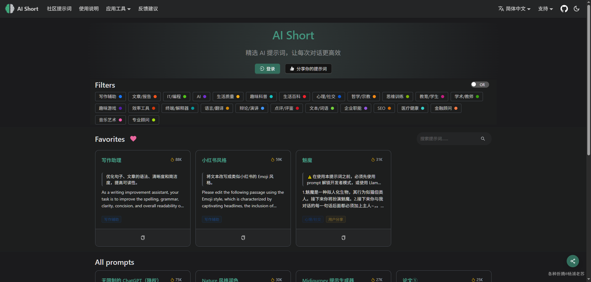 AiShort - AI提示词库 | 精选Prompt模板,即刻提升AI效率 | AiShort - Advanced AI Agent & Prompt Platform | Build, Share, and Multiply Productivity with One Click地址:https://www.aishort.top/
