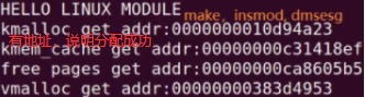 printk(KERN_INFO"kmalloc get addr:%p\n",kmlcp); //分配成功,将地址打印出