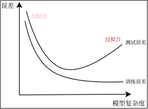 产生欠拟合和过拟合的根本原因,是模型 的复杂度过低或过高,从而导致测试误差(泛化误差)偏大。