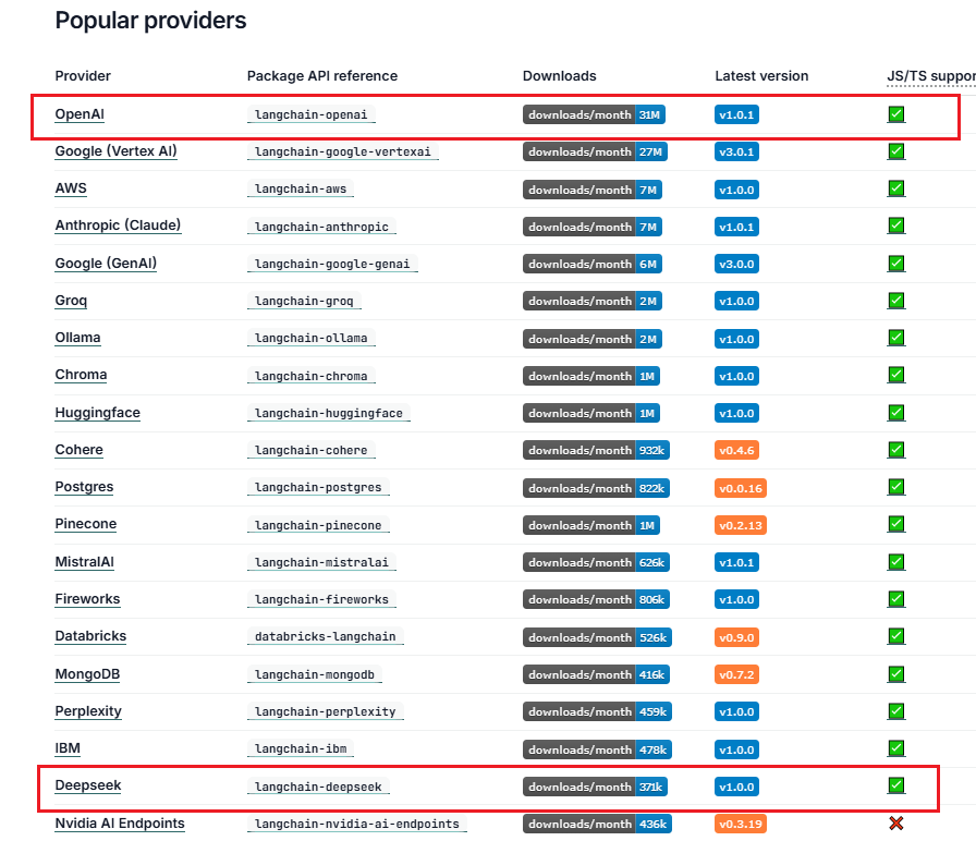LangChain 支持所有主要模型提供商,包括 OpenAI、Anthropic、Google、Azure、AWS Bedrock 等。每个提供商都提供具有不同功能的各种模型。
