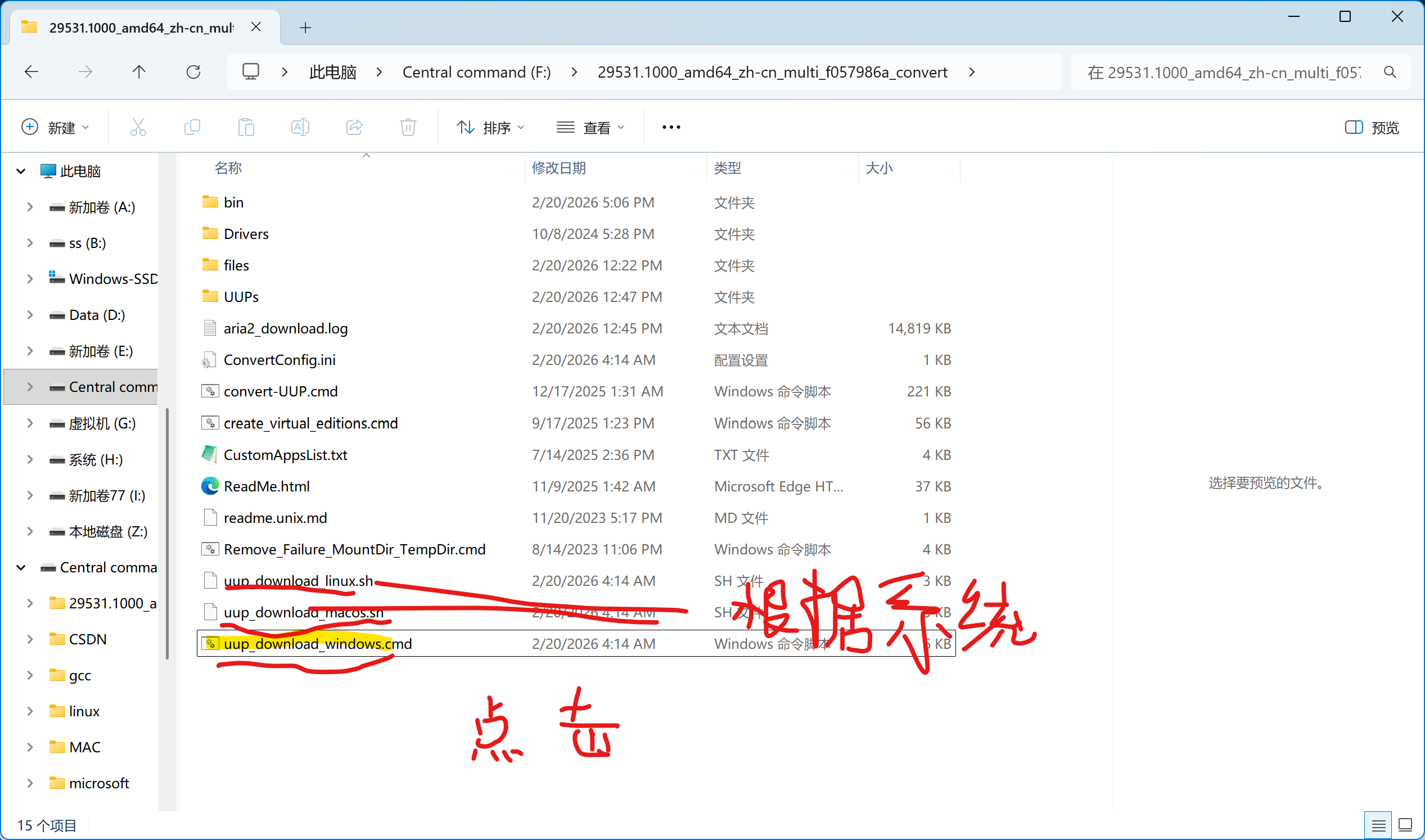 2.点开解压后文件夹目录下的uup_download_windows.cmd文件(注:非Windows点击uup_download_mac/linux)