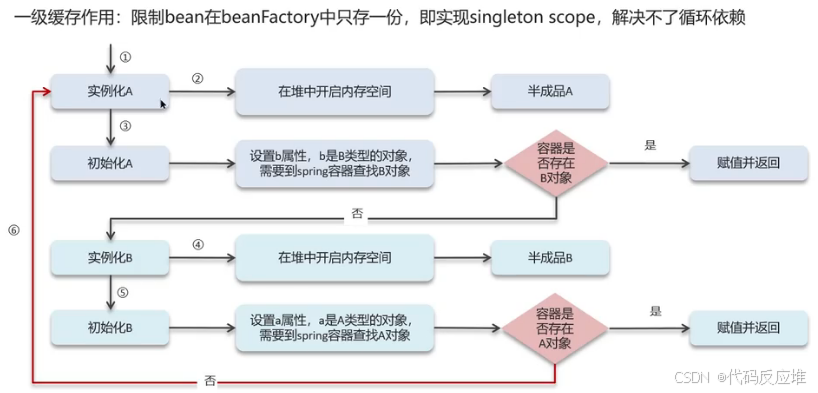 从单例Bean的初始化来看,循环依赖发生在第二步,也就是填充属性的一步。