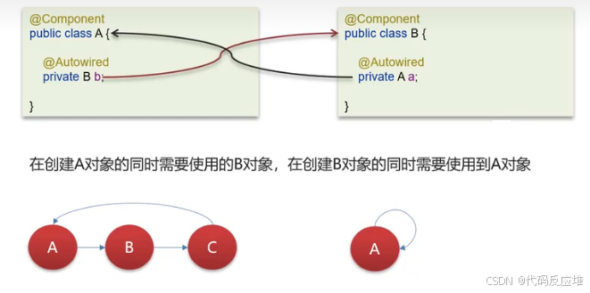 这段代码展示的是典型的构造器循环依赖,Spring无法自动解决