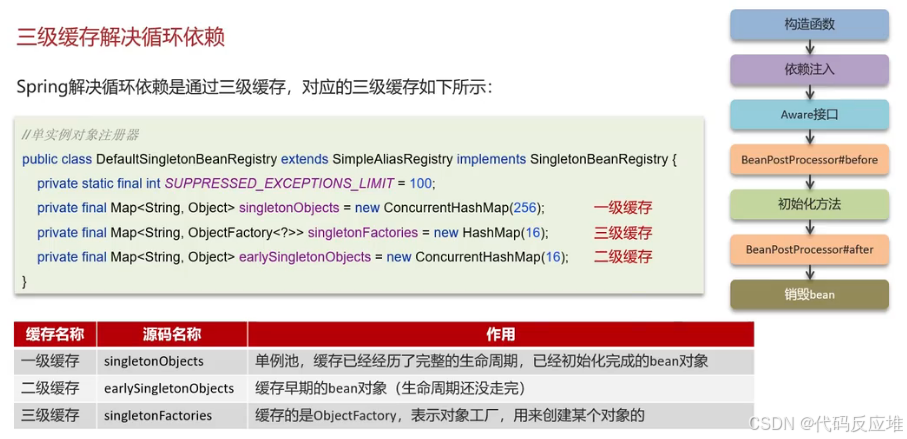 在Spring容器的整个生命周期中,只有Scope为singleton(单例)才会注入到spring工厂中,由于单例Bean只有一个对象,于是可以使用缓存来管理它。