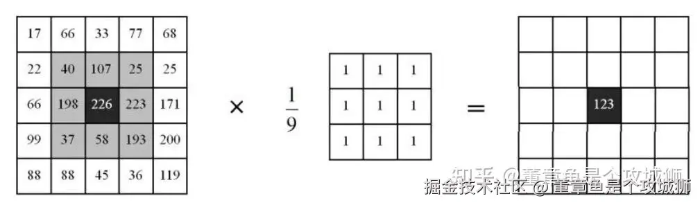 一取均值的话,噪声点突变的像素值就被平均了,输出就会显得没那么明显了,图片的平滑效果就会好很多。