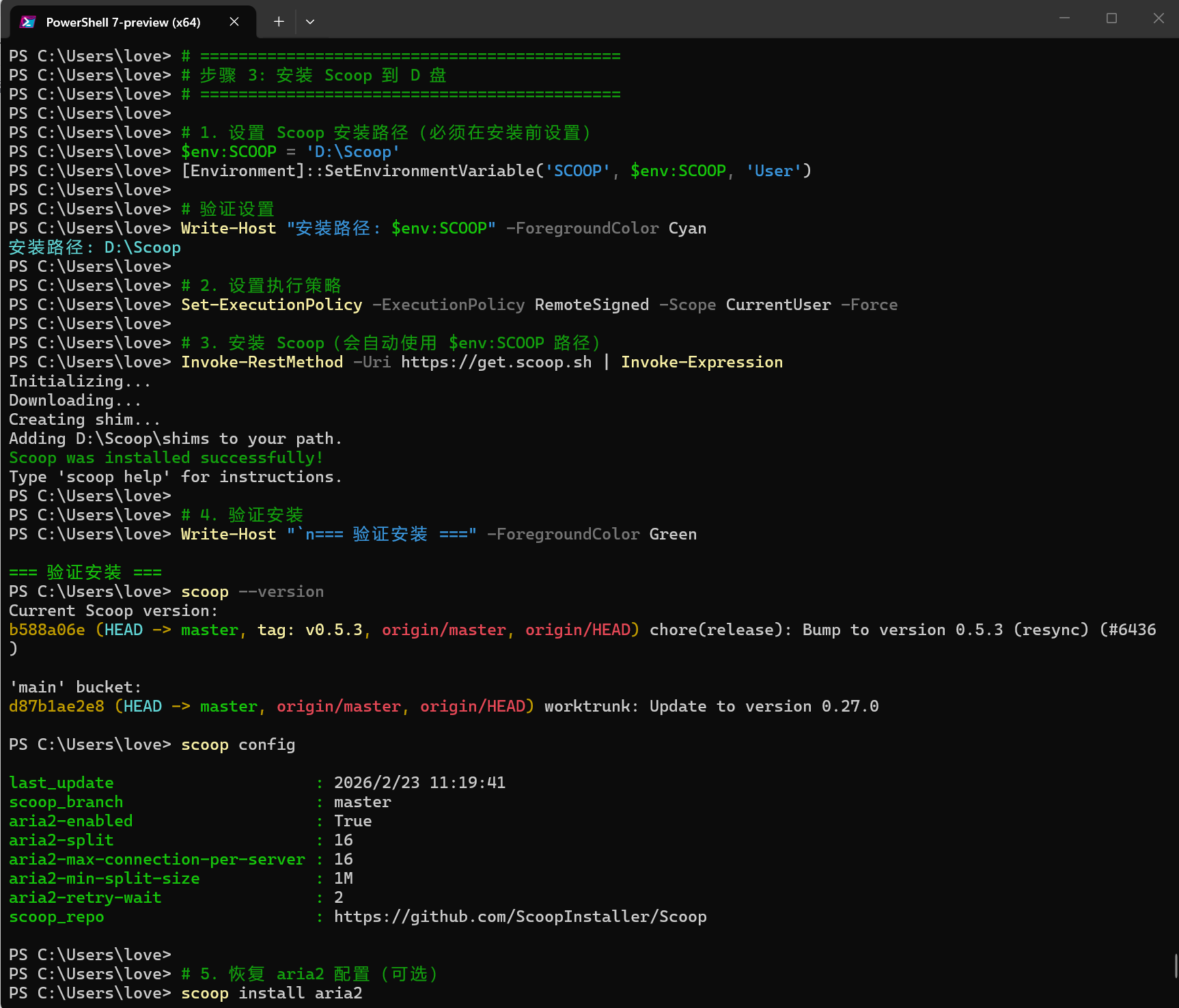 现在你的 Scoop 已经安家在 D 盘,可以放心安装更多软件了!🚀