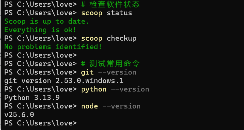 # 安装 Scoop(会自动使用 $env:SCOOP 路径)