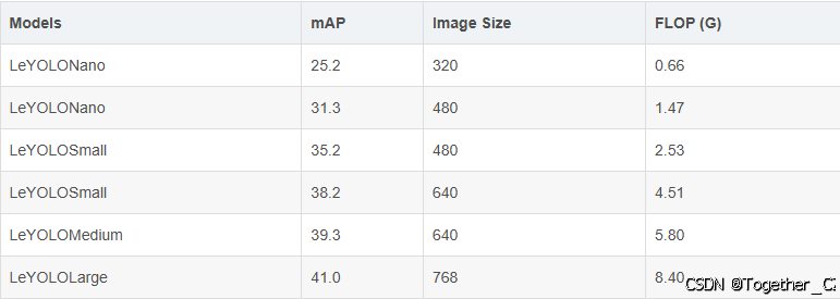 在这些优化的基础上,利用更高效的主干,为对象检测和以YOLO为中心的模型(称为LeYOLO)提供了一种新的缩放范例。在各种资源限制下始终优于现有模型,实现了前所未有的准确性和失败率。值得注意的是,LeYOLO Small在COCO val上仅以4.5次失败(G)获得了38.2%的竞争性mAP分数,与最新最先进的YOLOv9微小模型相比,计算量减少了42%,同时实现了类似的精度。我们的新型模型系列实现了以前未达到的浮点精度比,提供了从超低神经网络配置(<1 GFLOP)到高效但要求苛刻的目标检测设置(>4 GFLOP)的可扩展性,对于0.66、1.47、2.53、4.51、5.8和8.4浮点(G),具有25.2、31.3、35.2、38.2、39.3和41 mAP。