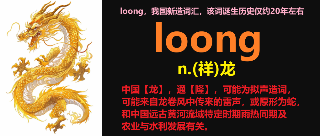 | 05 | 龙 | loong | long长的、dragon恶龙 |