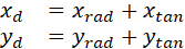 x tan =2 p 1 xy+ p 2 ( r 2 +2 x 2 ) y tan = p 1 ( r 2 +2 y 2 )+2 p 2xy
