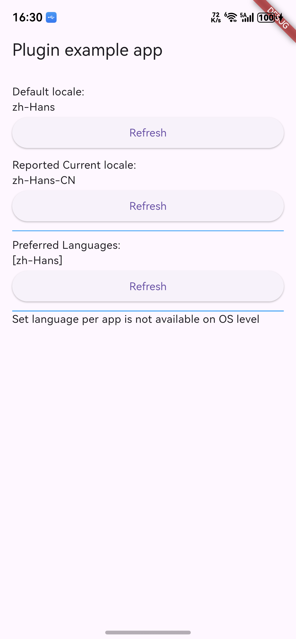 uk.spiralarm.flutter/devicelocale,并约定方法名:preferredLanguages、currentLocale、setLanguagePerApp、isLanguagePerAppSettingSupported、getPlatformVersion。鸿蒙侧需实现同名 MethodChannel 与相同方法名。 - 参考 Android 实现 :Android 端使用