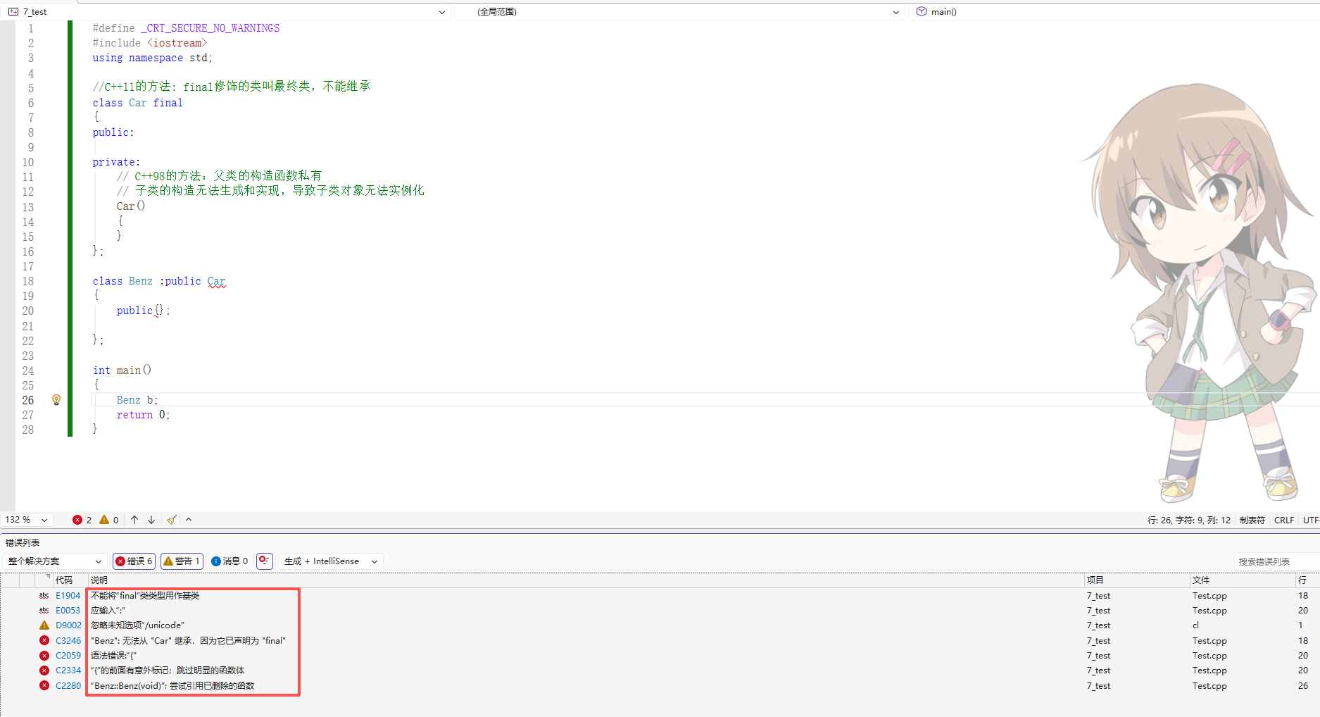 C++对函数重写的要求比较严格,但是有些情况下由于疏忽,可能会导致函数名字次序写反而无法构成重载,而这种错误在编译期间是不会报出的,只有在程序运行时没有得到预期结果才来debug会得不偿失,因此:C++11提供了override和final两个关键字,可以帮助用户检测是否重写。