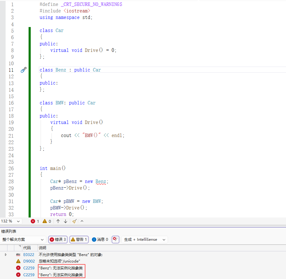 检查 派生类虚函数 是否重写了基类某个虚函数,如果没有重写编译报错.