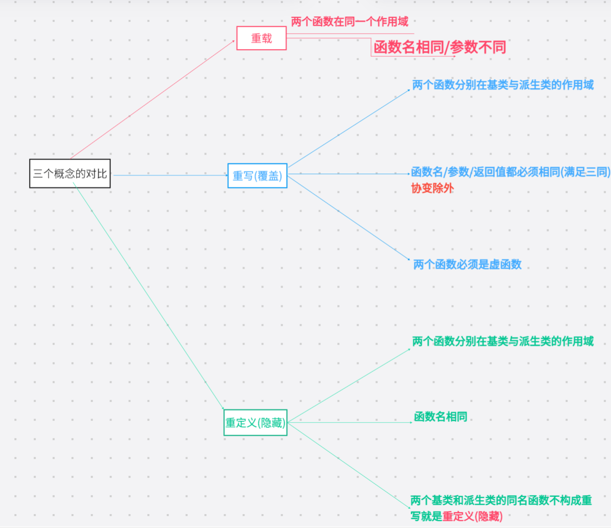 - 两个基类和派生类的同名函数不构成重写就是重定义.