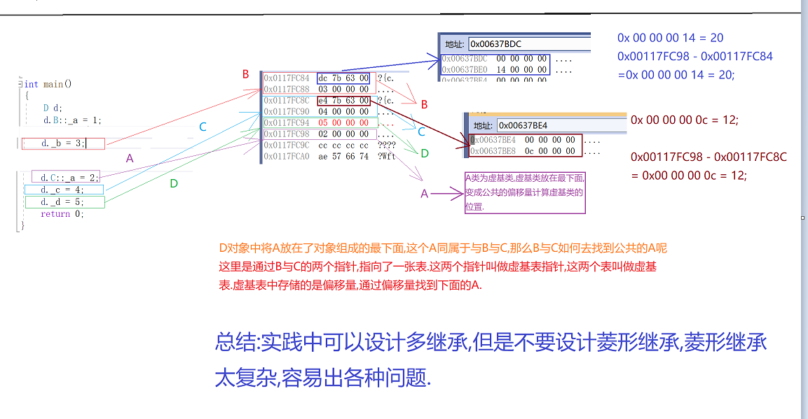 Vfptr* vTableb2 = (Vfptr*)(*(int*)((char*)&d + sizeof(Base1)));