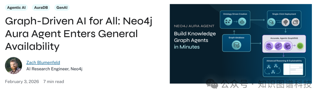 在AI智能体(Agentic AI)市场快速扩张的当下,Neo4j宣布其开创性的智能体创建平台------Neo4j Aura Agent正式进入全面可用阶段,并在2026年2月全月提供免费使用。这一平台为AuraDB客户带来了革命性的体验:只需几分钟即可构建和部署基于知识图谱的智能体,并配备强大的新功能------包括基于本体的自动化智能体构建,以及一键部署到安全托管的MCP服务器。
