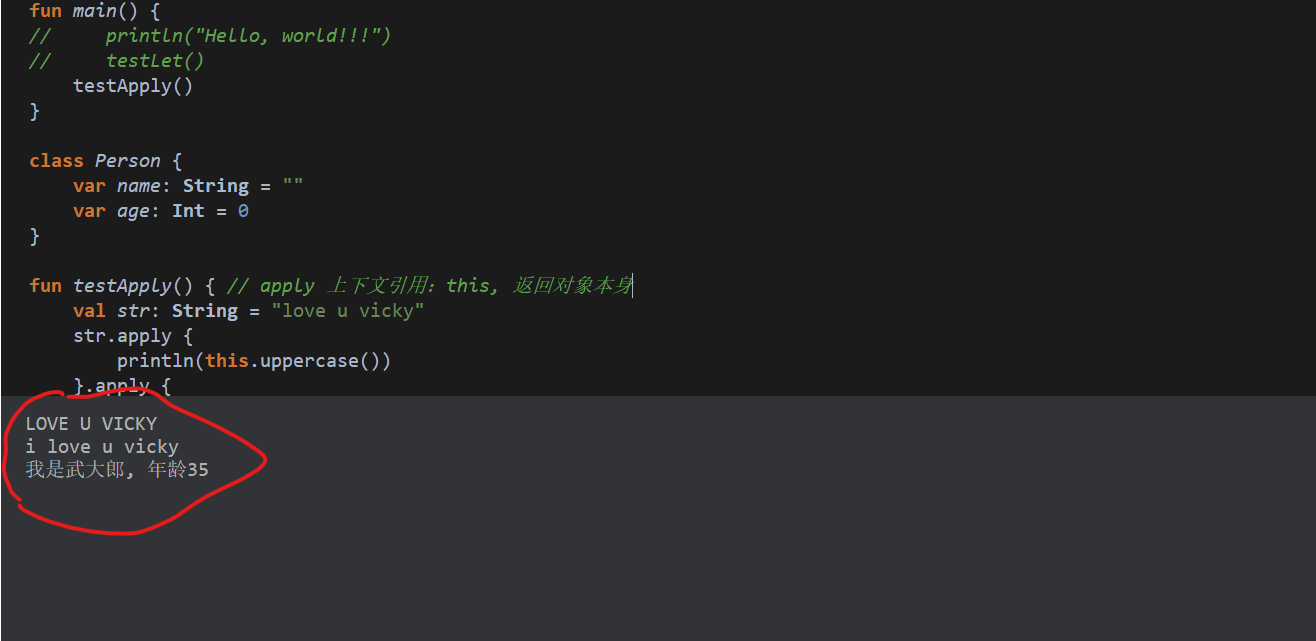 fun testApply() { // apply函数 上下文引用:this, 返回对象本身