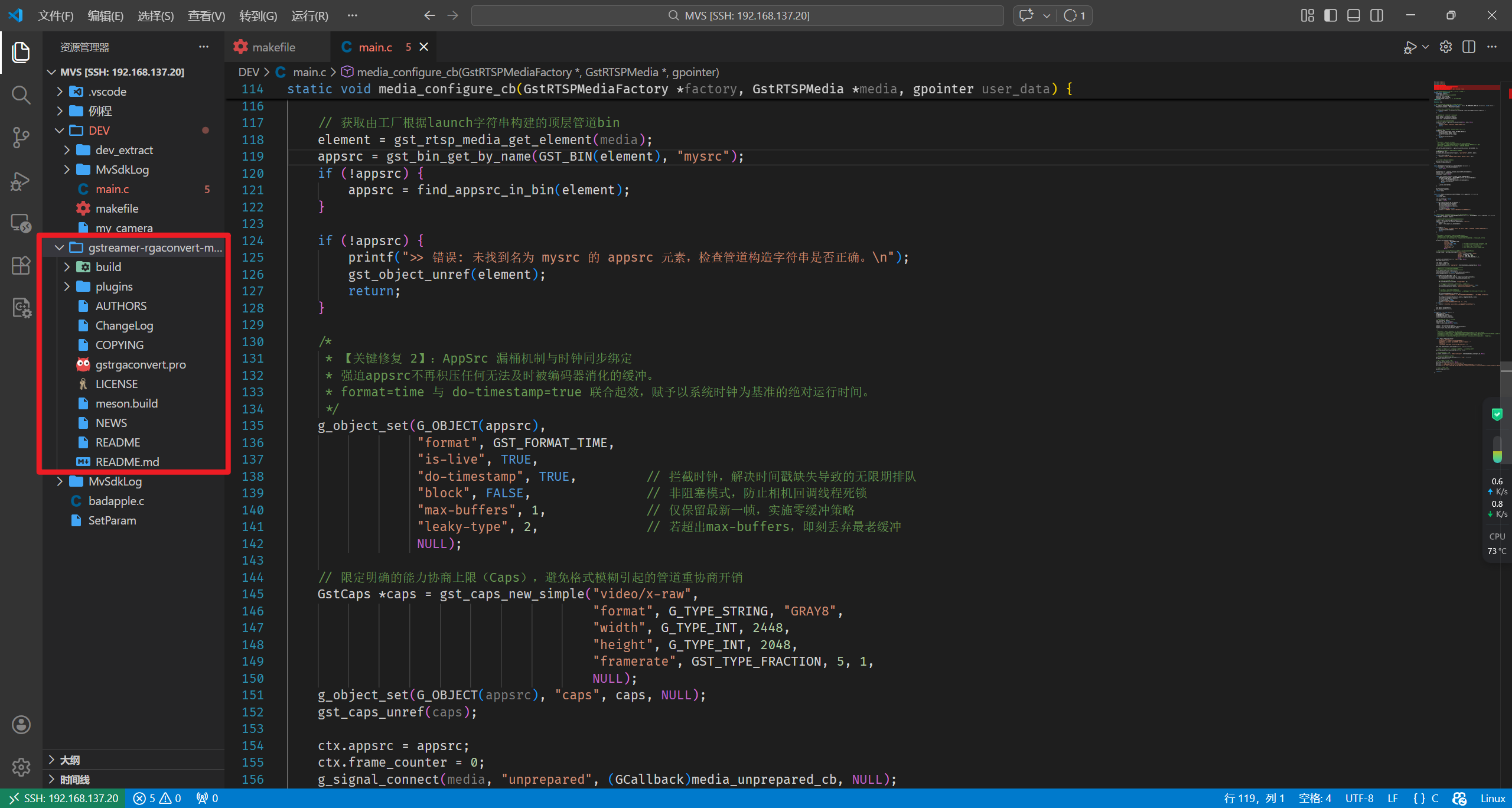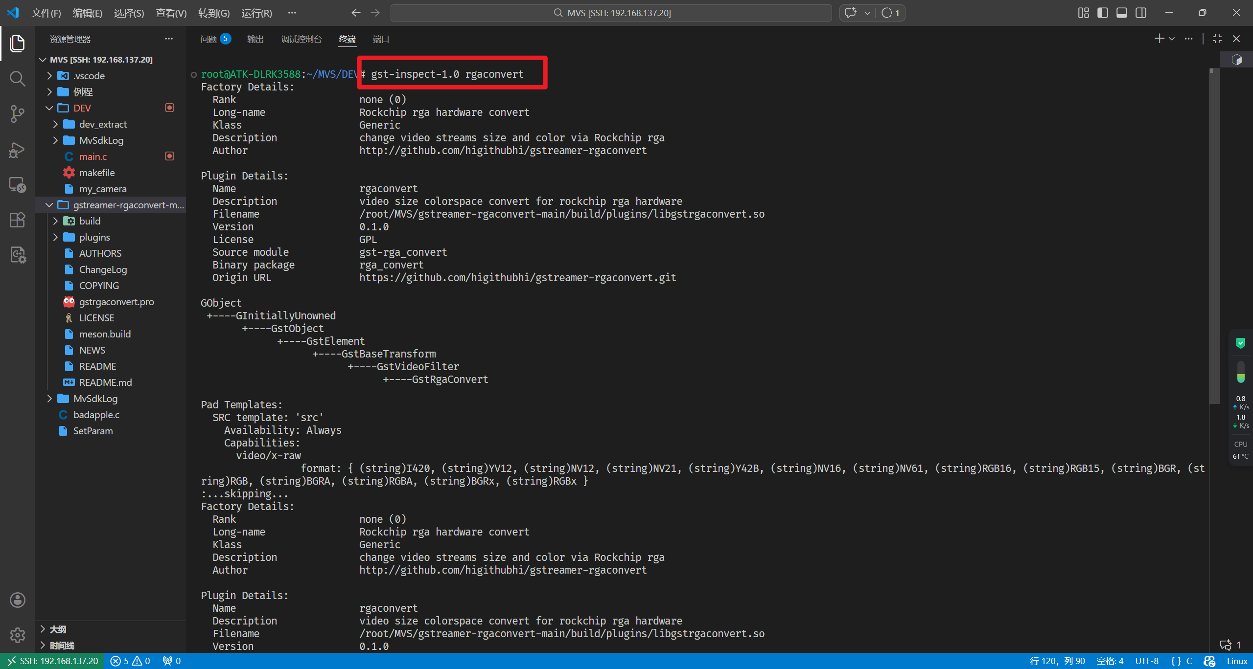 RK3588作为远程开发的环境,其编译全在开发板中进行。通过VS code的ssh功能连接开发板开发,首先把这个github仓库的内容(地址:higithubhi/gstreamer-rgaconvert: video size colorspace convert for rockchip rga hardware)放进开发板中: