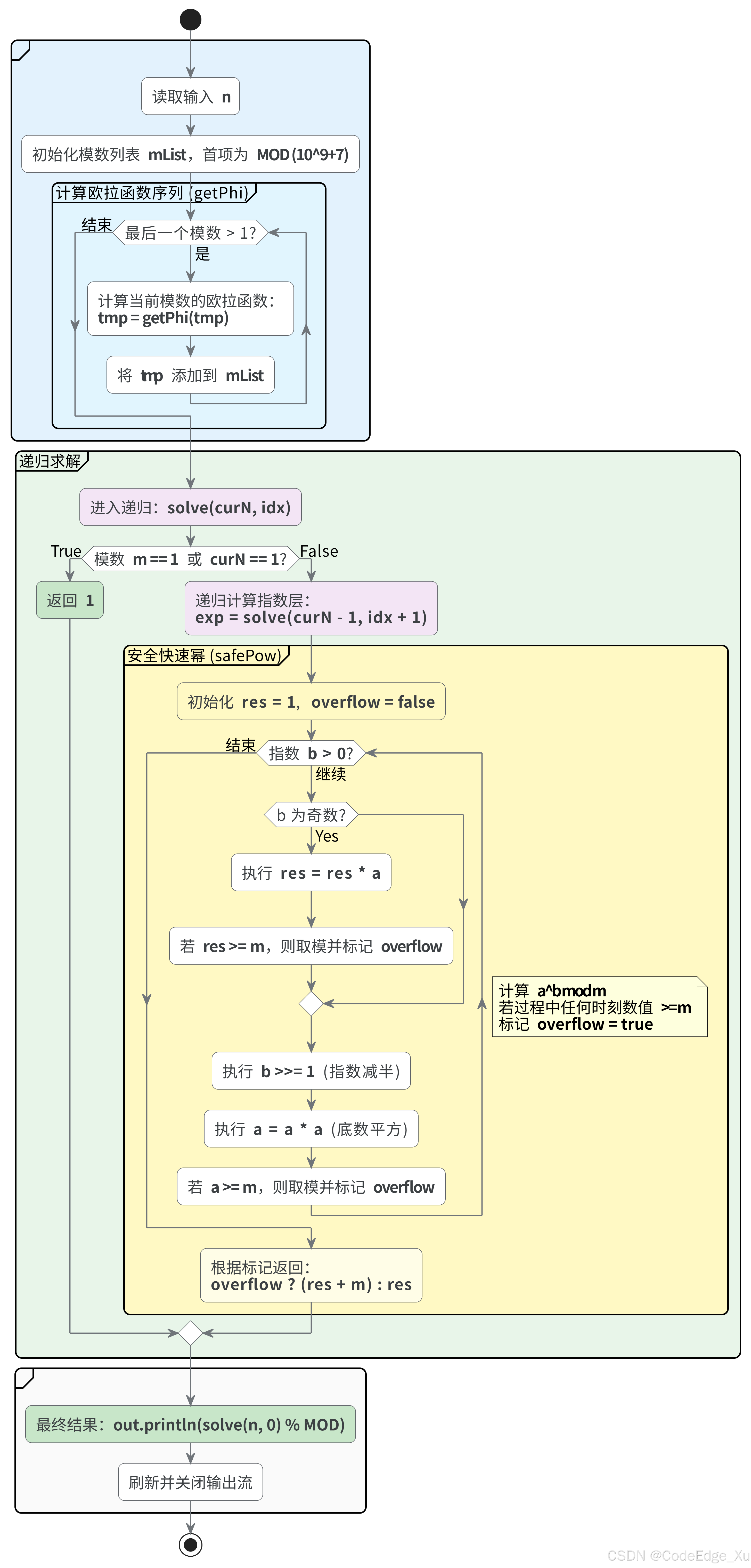 * 安全的幂运算函数,计算 a^b mod m,并处理可能的溢出情况