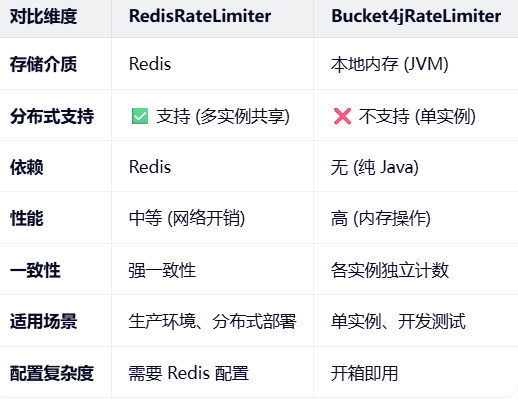 defaultRateLimiter 的限流策略的实现默认提供了两个维度分别为:Bucket4jRateLimiter与RedisRateLimiter